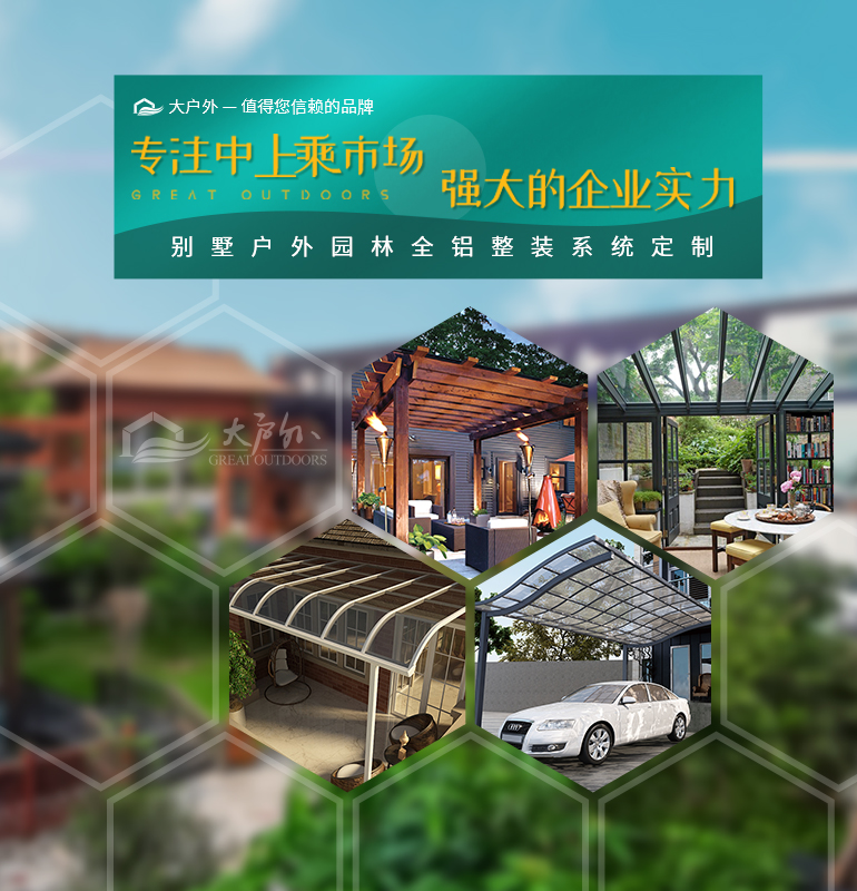 大戶外立足于”中國鋁都“佛山南海,專注別墅遮陽(雨)產(chǎn)品開發(fā),是南海地區(qū)鋁合金遮陽行業(yè)的知名品牌。